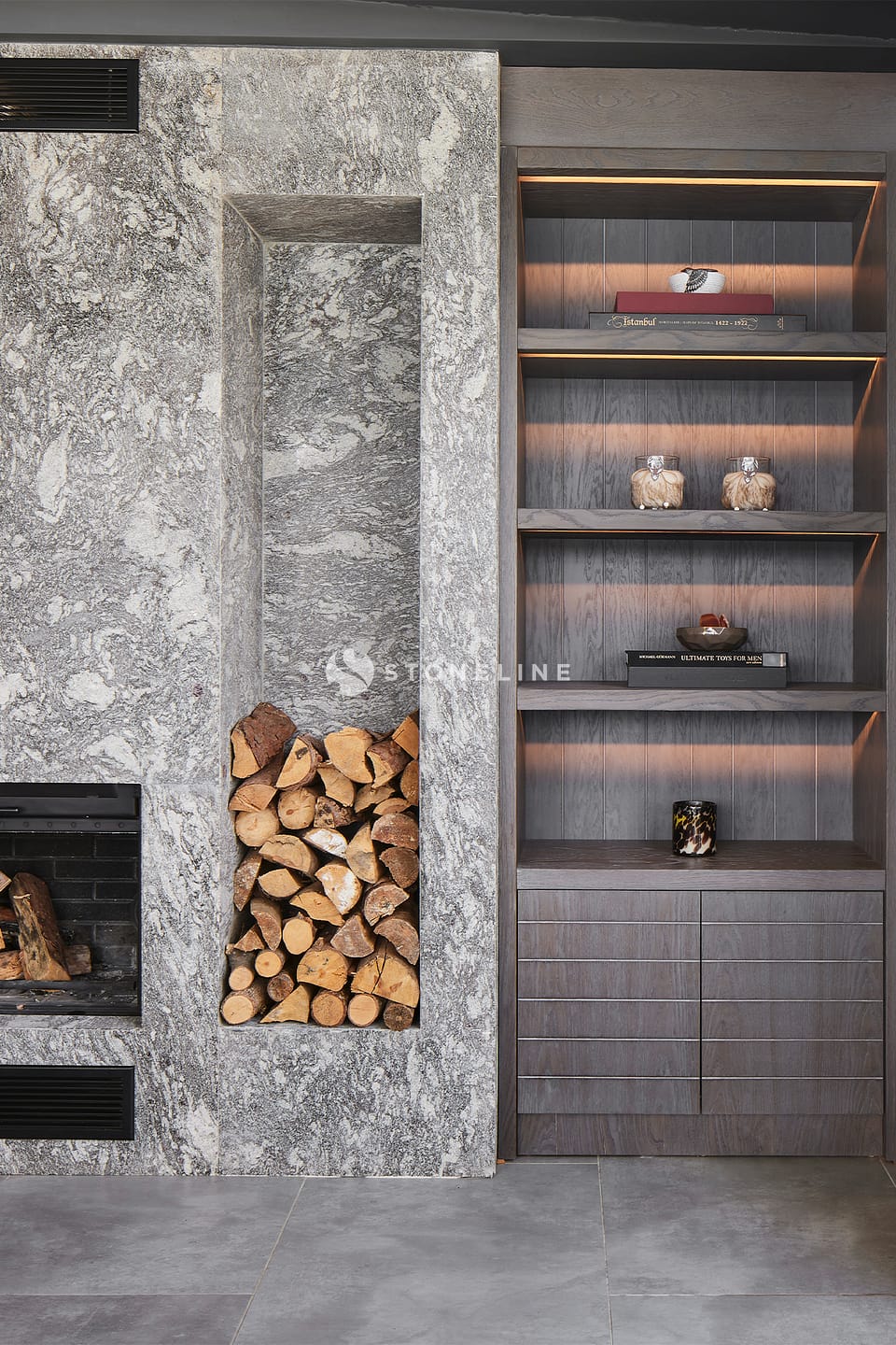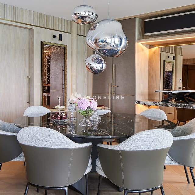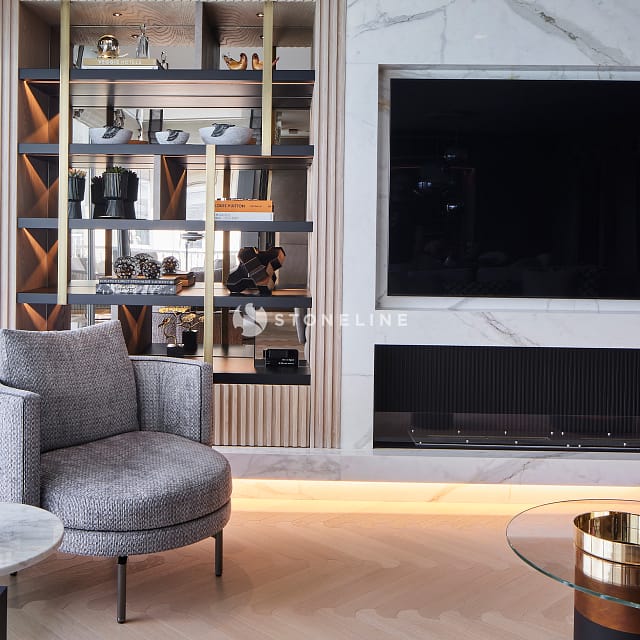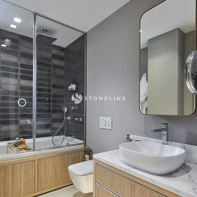 In this special residence project designed by Esra Kazmirci Architecture, Graphite, Calacatta Carrara Extra, Trani Grey, Bianco Lasa Venato Gold, New Shooting Star stones from the Stoneline natural stone collection were preferred. Hundreds of stones in the Stoneline natural stone collection are waiting for you to be your source of inspiration.