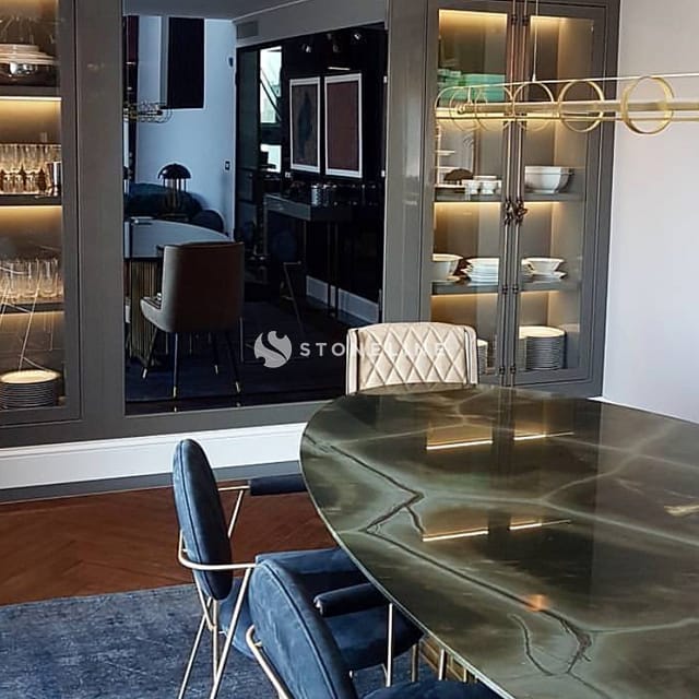 This table is decorated with Turtle Quartzite as one of the most dazzling formations in nature. The unique touch of nature is felt everywhere with this green table featuring tortoise pattern. You can make use of hundreds of different natural stones from Stoneline’s catalogue for dinner/coffee/side tables.