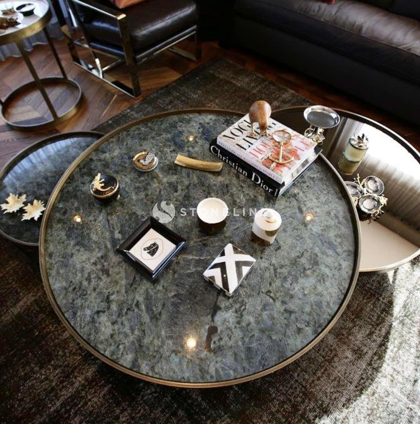 Formed in the universe in thousands of years, Labradorite Lemurian redefines spaces with its own story. Its authentic color and crystal form add a sense of history to surfaces, turning this stylish coffee table into a timeless design piece.