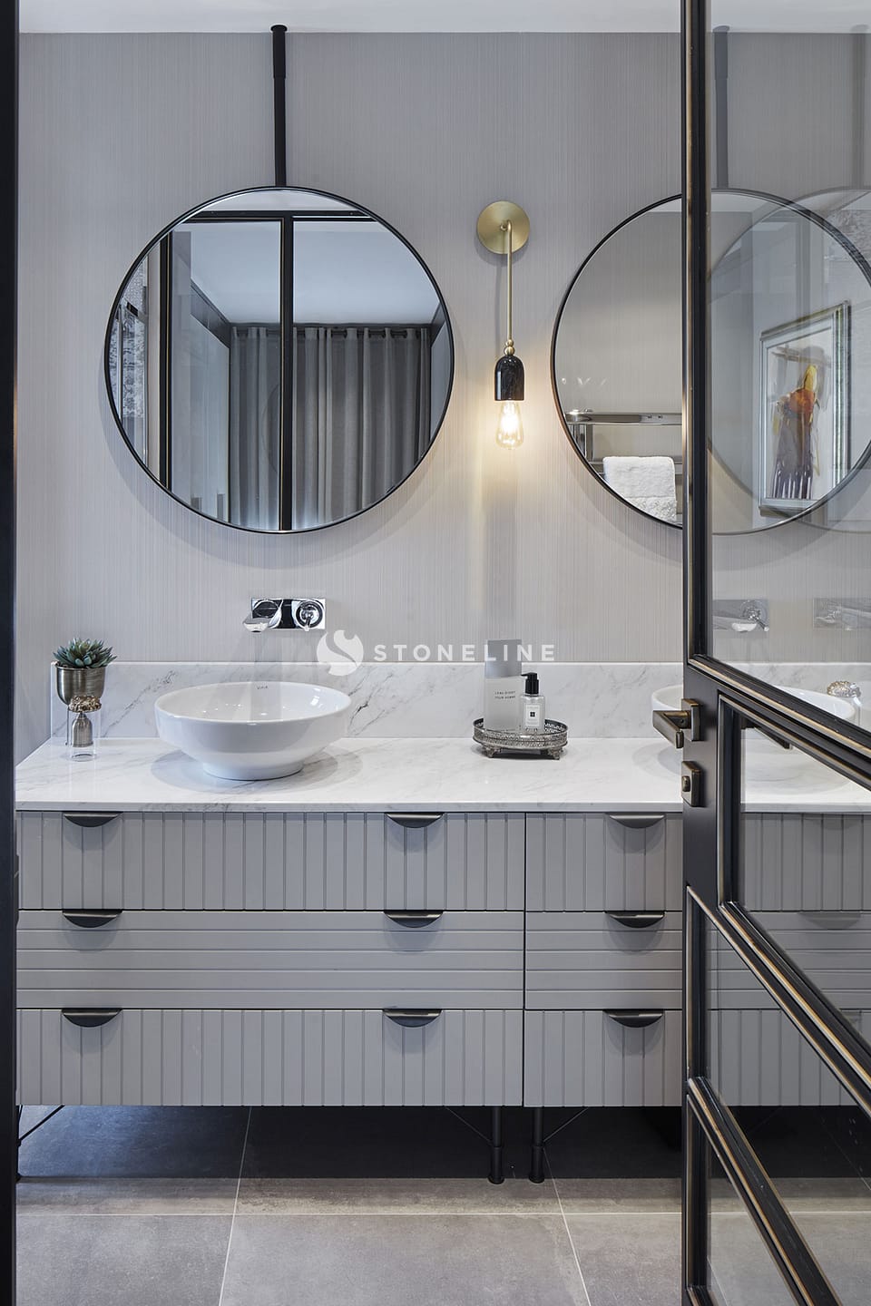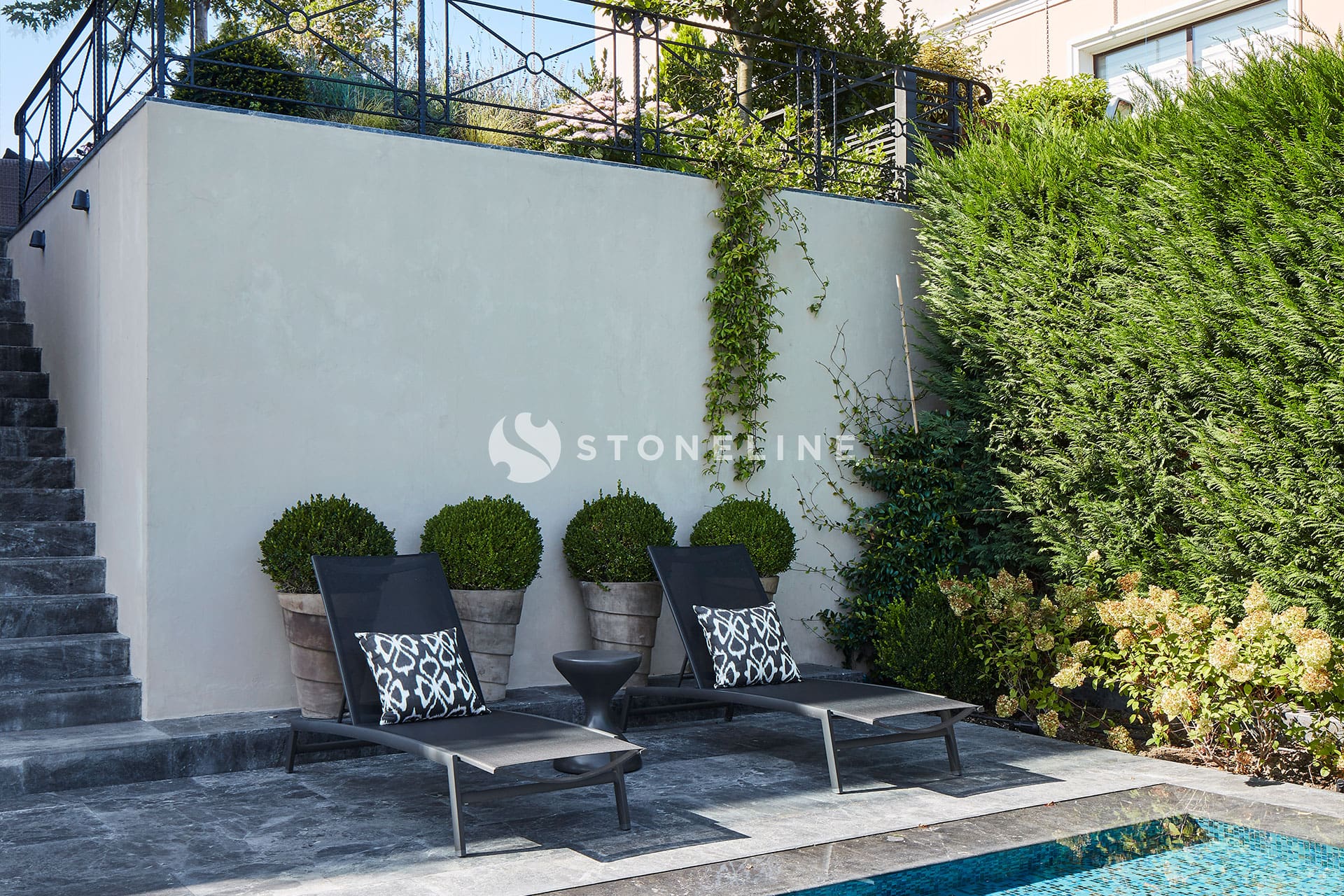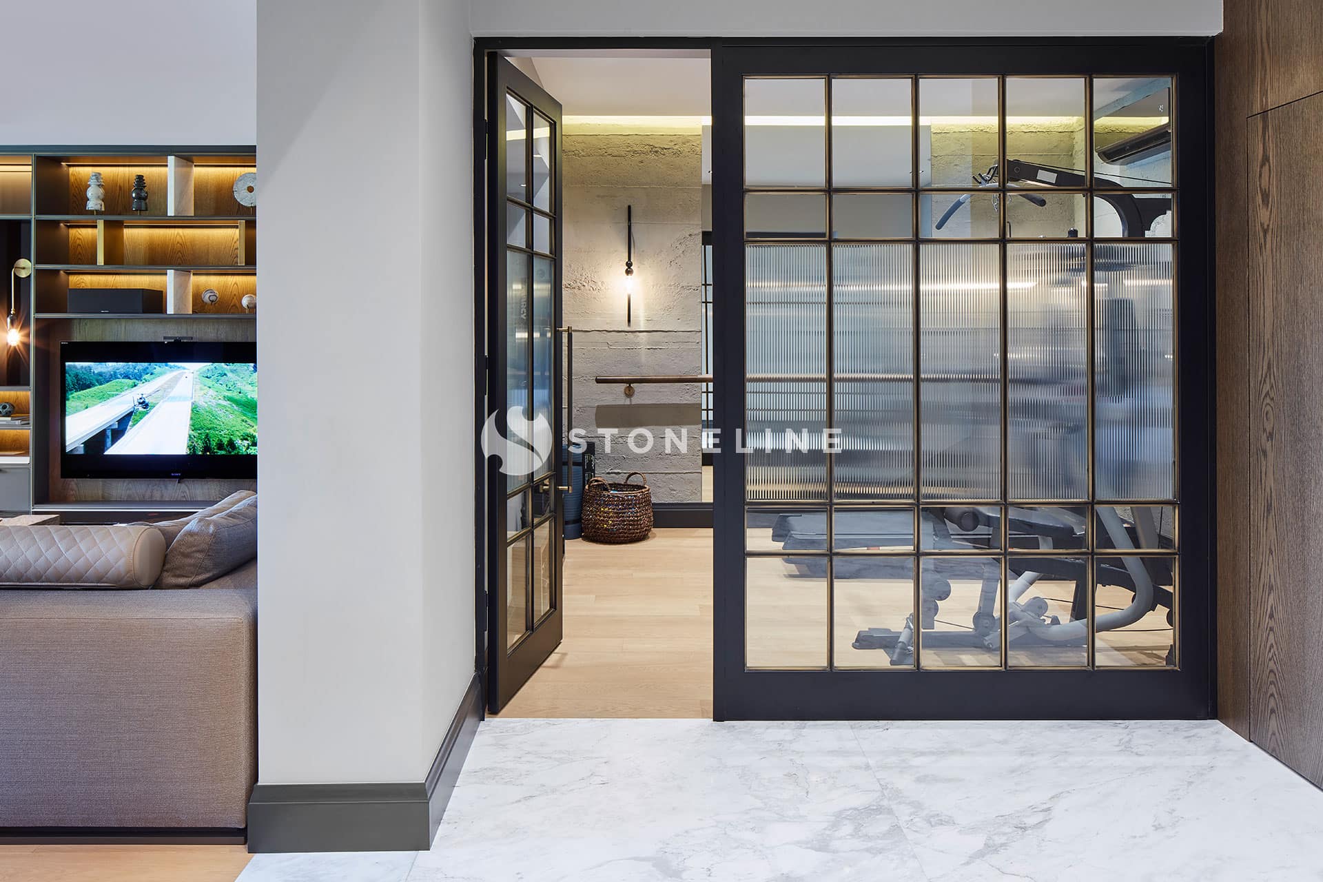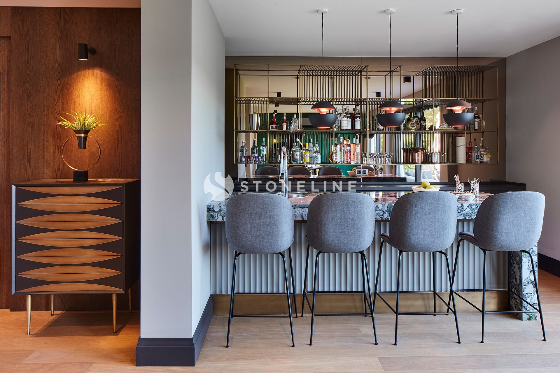 Elegance and functionality come together in this private residence. Interiors are decorated with Bianco Fantastico marble in the bathroom and kitchen, while King Black is used as curb. Green&Grey enriches the bar, and Beldere stands out on the dinner table for timeless design.