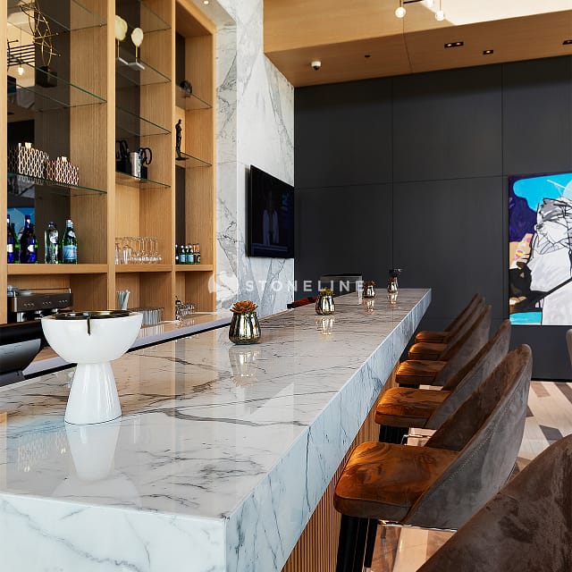 Stoneline natural stone collection brings modern and sophisticated designs to your spaces with stones like New St. Laurent, Statuario Big Vein Extra, Bianco Dolomiti, Ice Grey, and Concordia. Each stone enriches the Stoneline collection with its elegant texture and aesthetic appeal.