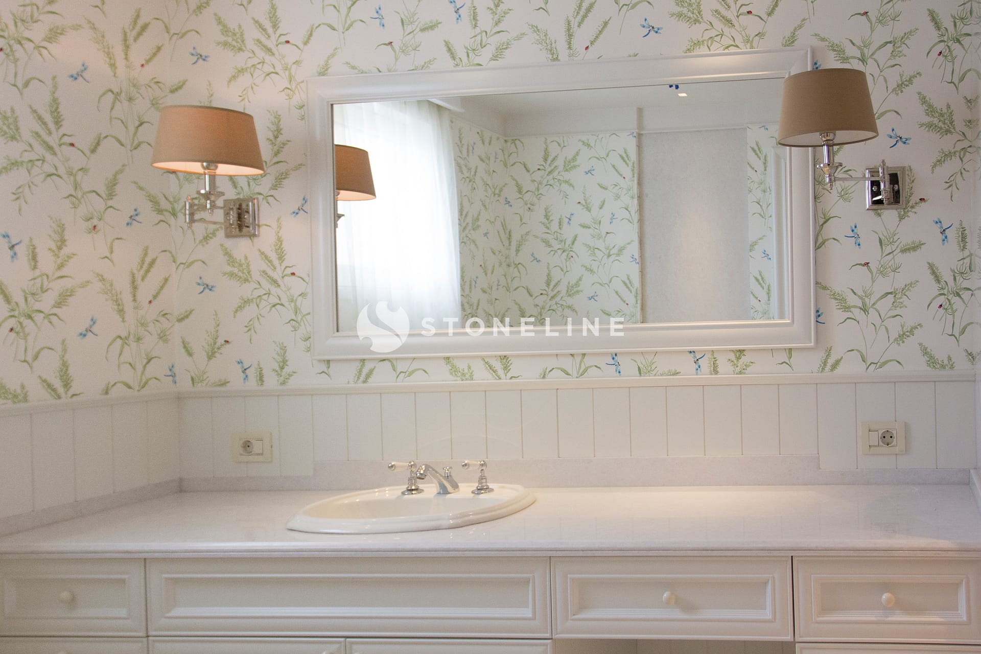 The ideal was to create a neat and stylish bathroom. King White and Pink Pearl were the choices in this project to elevate spaciousness and tranquility with their colors and homogeneity. The second bathroom is decorated with Caramel Grey for a matchless harmony with metal details. You can also discover hundreds of stones from the natural stone selection of Stoneline for your elegant designs.