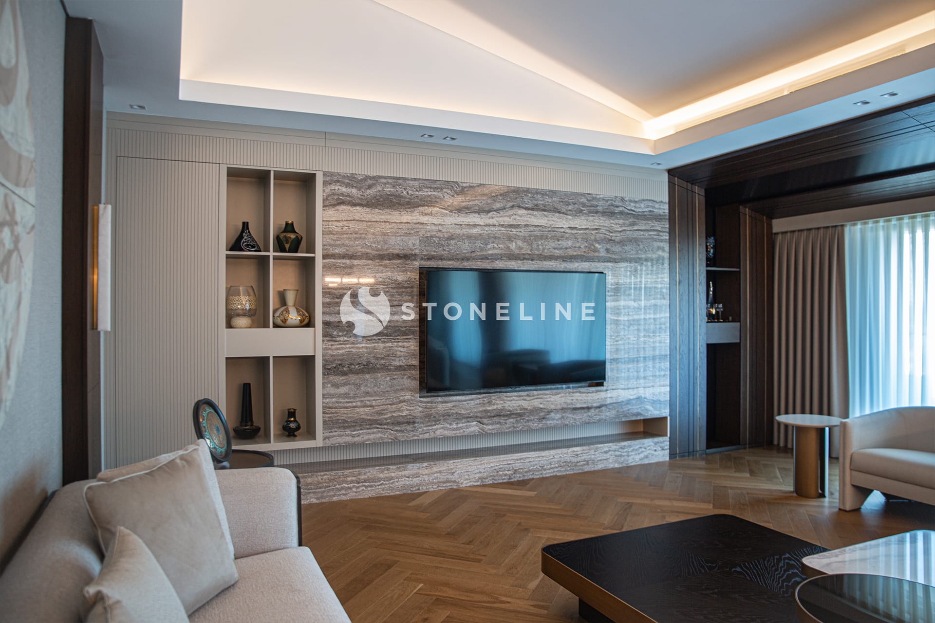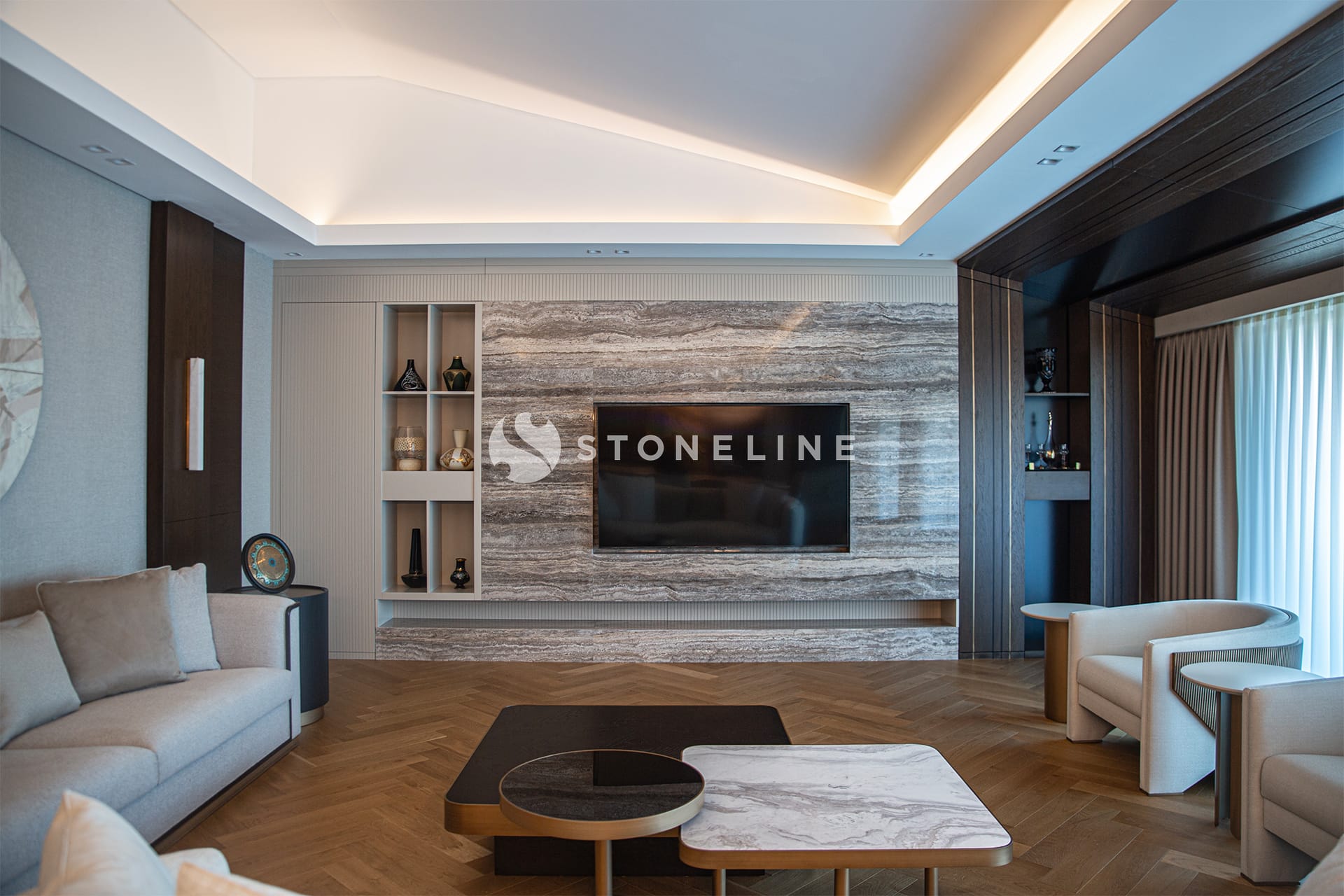 Designed with natural stone, this residential project offers the most coveted piece of bespoke design. Using select natural stones such as Abstract, Persian Silver TRV VC and Bianco Fantastico, every detail has been meticulously considered and planned to meet your specific needs. This exclusive residence is not only a living space, but also stands out as a personal work of art.