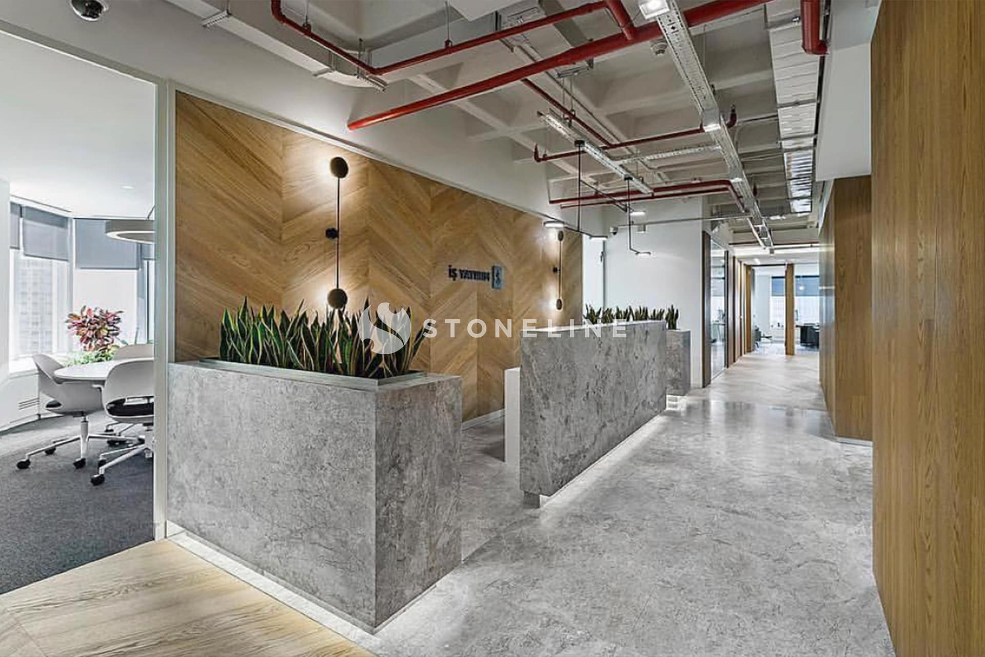 This office project targets at creating a lean and stylish ambiance. Tundra Grey served as the final touch with the shades of grey. You can make use of Stoneline’s natural stone collection in your office designs.
