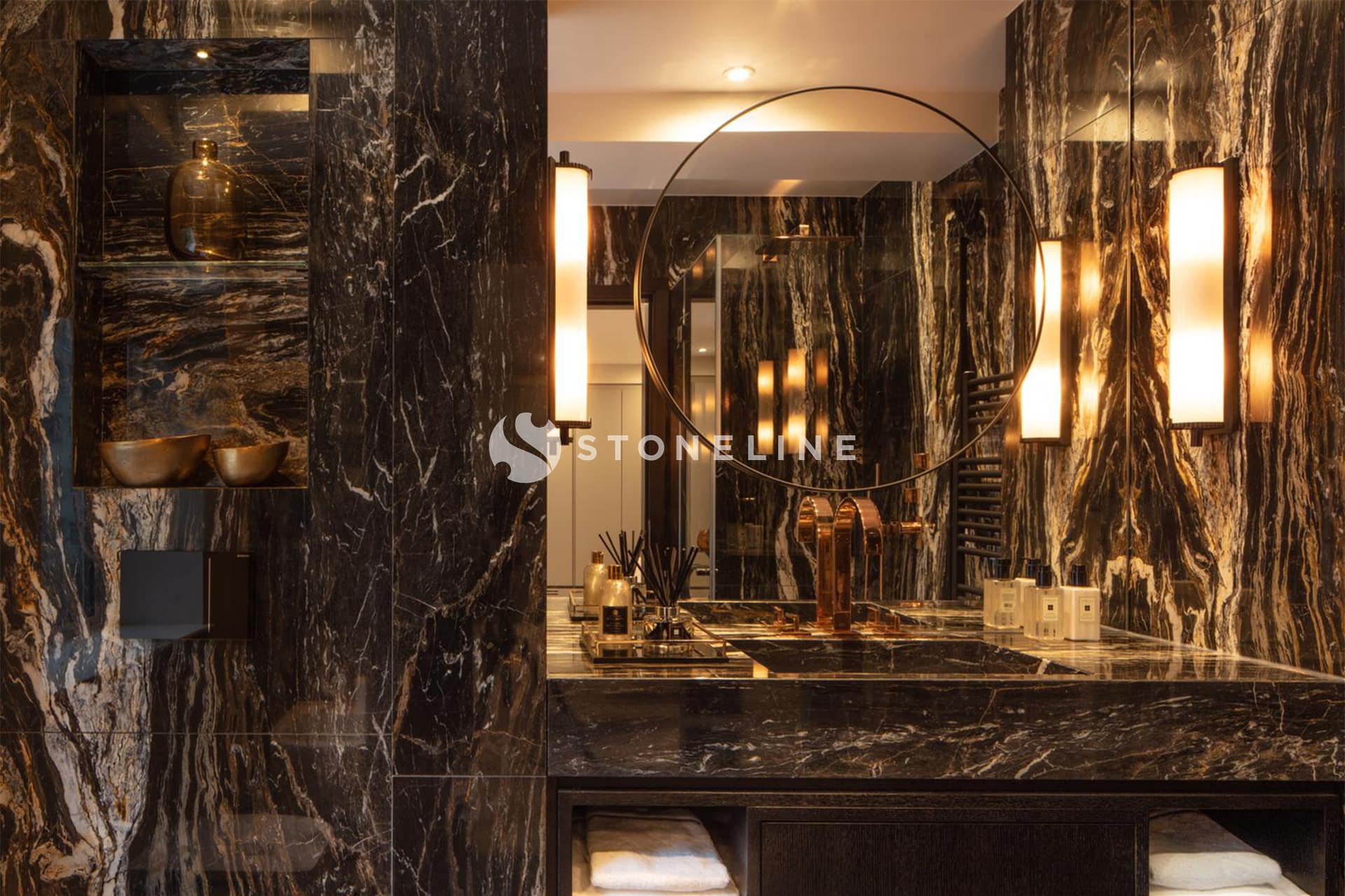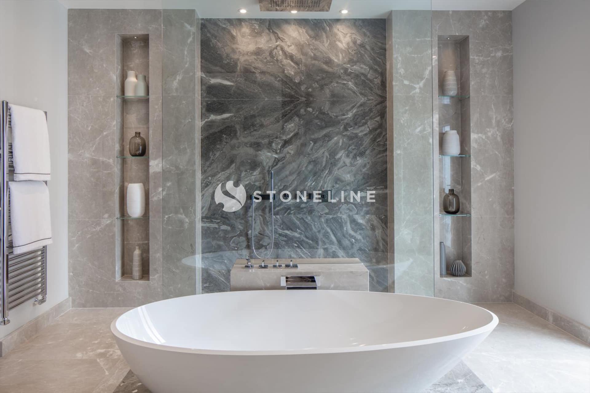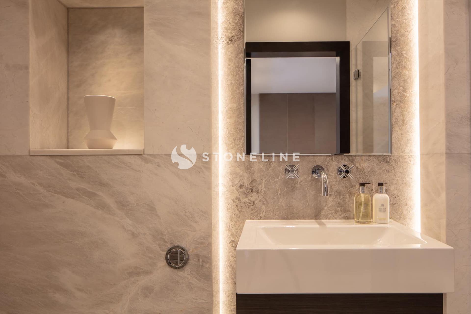 Grey Vision marble adds a unique elegance to the spaces in this residential project with Nero Gali VC, Polar White, Romano Grey, Titanic Grey and Cool Grey.