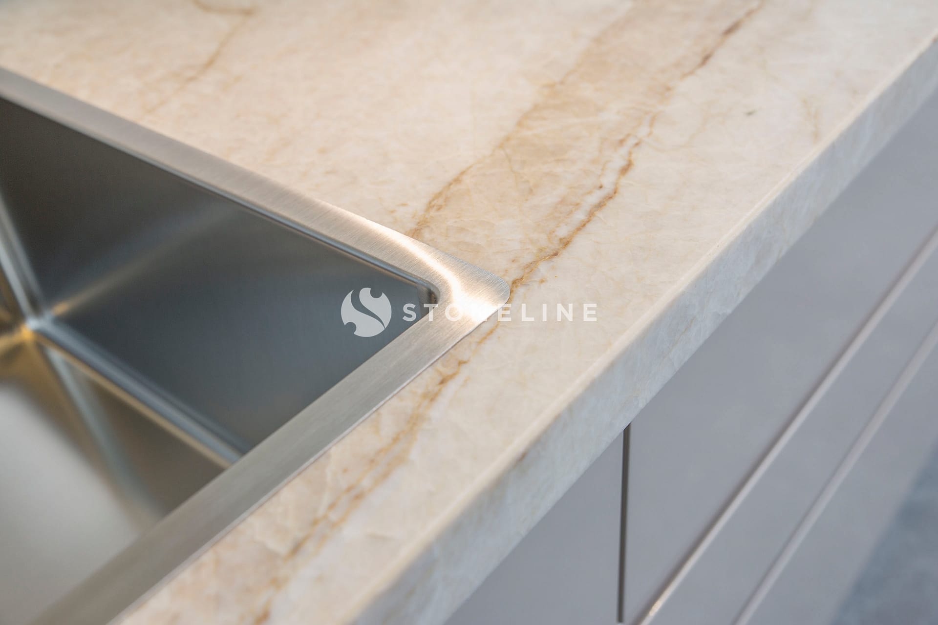 Naca has the potential to be the focus of designs as a quartzite that can be applied on any surface such as kitchen countertop, dinner or coffee table in plain and stylish designs. You can also discover hundreds of stones from the natural stone selection of Stoneline for your elegant designs.