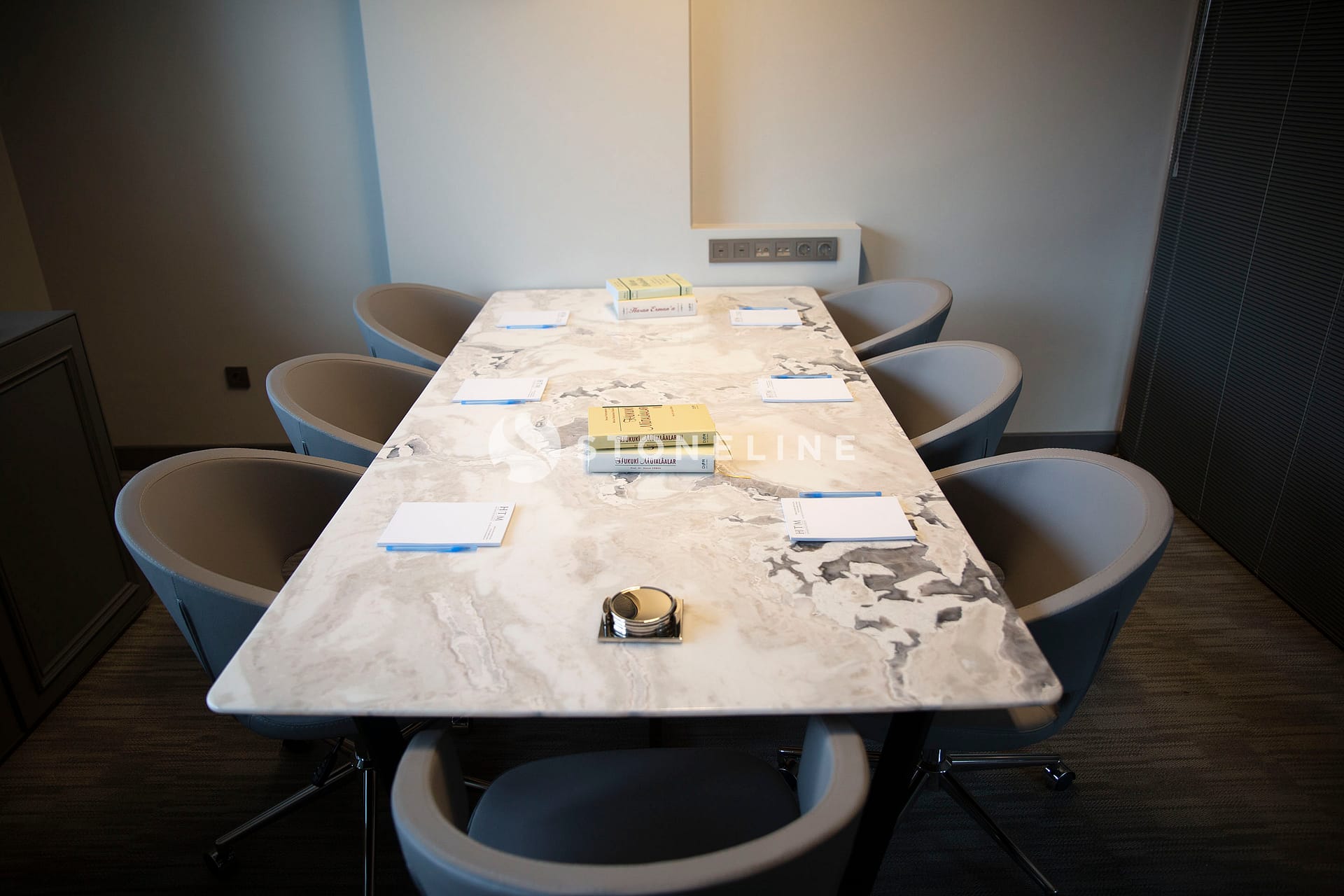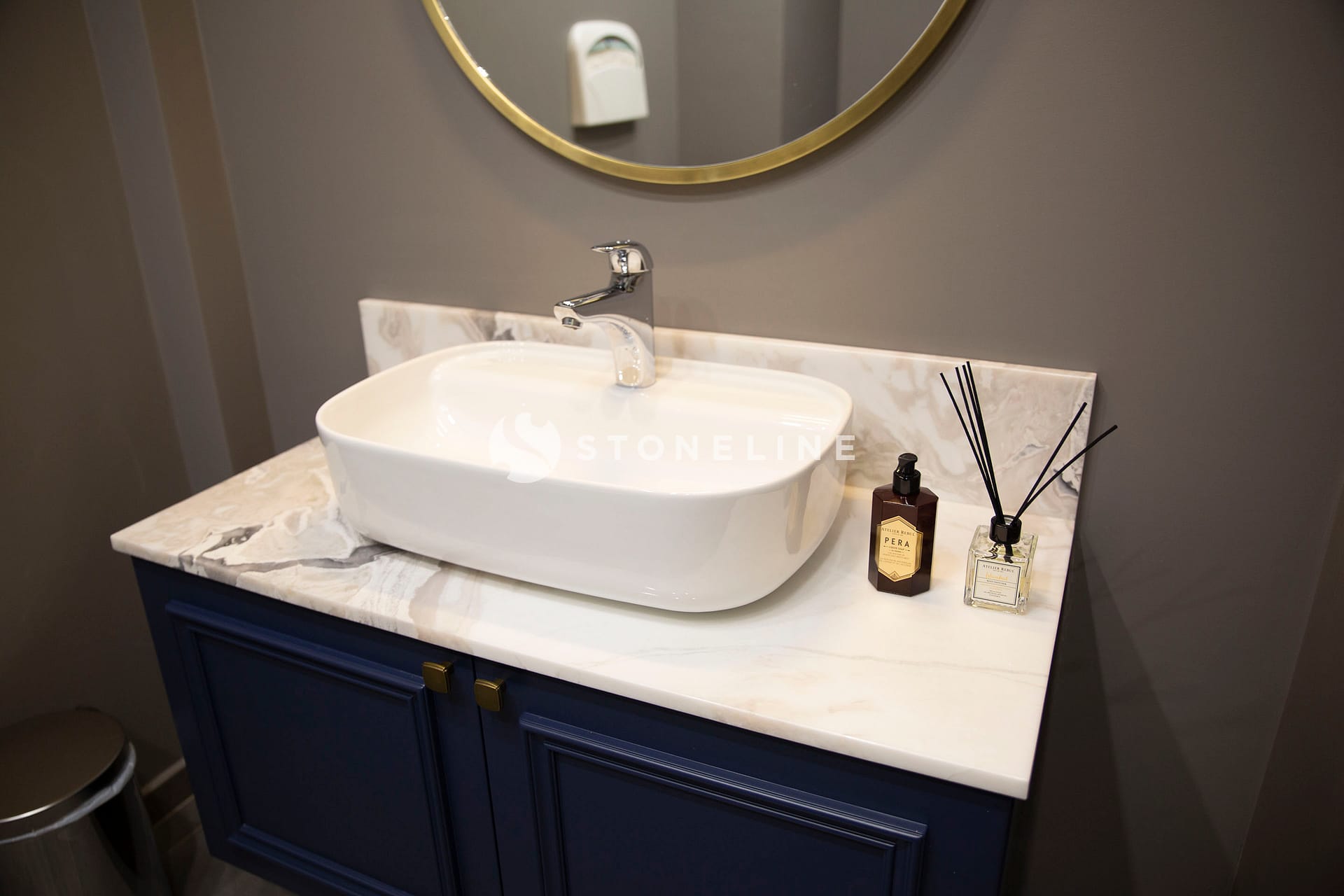 Dove White, a stylish and elegant marble reflecting the dance of white and grey veins on a wavy background, is preferred in this project. You can make use of hundreds of different natural stones from Stoneline’s catalogue for dinner/coffee/side tables.