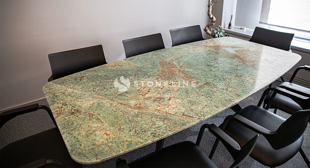 Amazon Green stone adds vibrancy and elegance to your spaces with its unique green tones and patterns reflecting the energy of nature. This stone not only creates a natural atmosphere in your office projects but also provides a modern and sophisticated appearance.