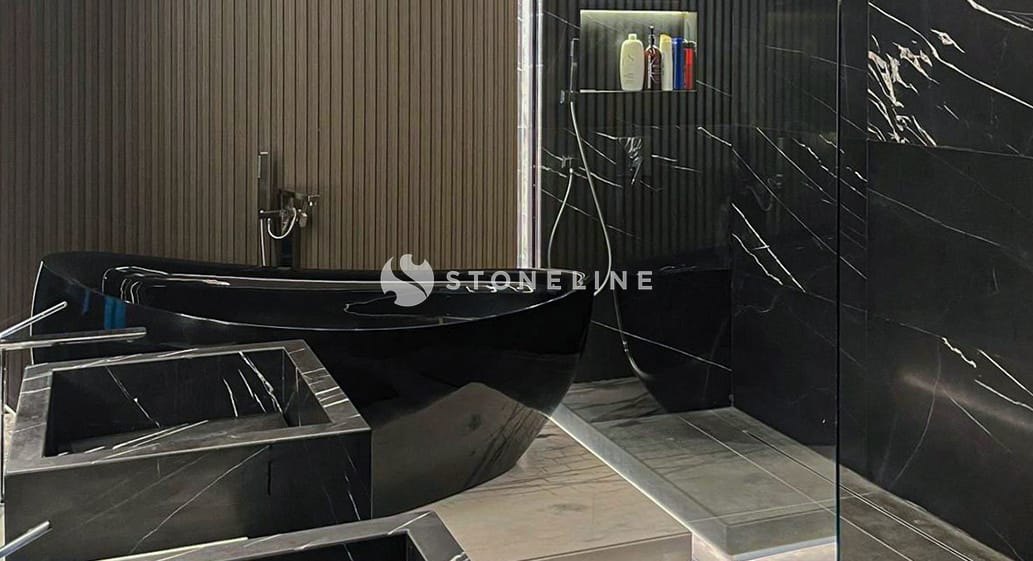 King Black and Calacatta Aria Extra stones used in Arif Architecture’s bathroom project represent luxury and elegance. While King Black stone adds a modern atmosphere to your bathroom with its deep black tones and elegant texture, Calacatta Aria Extra stone brings natural elegance to your bathroom with its noble tones of white and unique veins. These stones complement each other perfectly, offering an unforgettable visual experience in your bathroom.