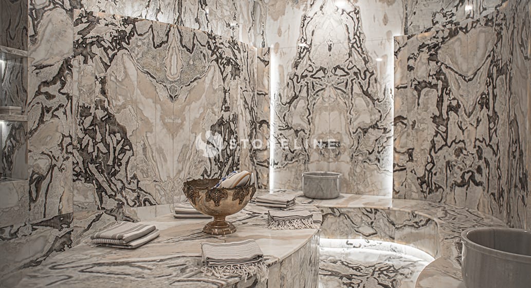 Stoneline collection offers a wide range of stones, from the pure white of Bianco Fantastico with high contrast to the elegant patterns and natural tones of Versalys. Each stone provides a different aesthetic emphasis for your projects. Collaborating with Zeynep Helvacıoğlu Mimarlık, the Stoneline natural stone collection presents exclusive stones that combine aesthetics and luxury.