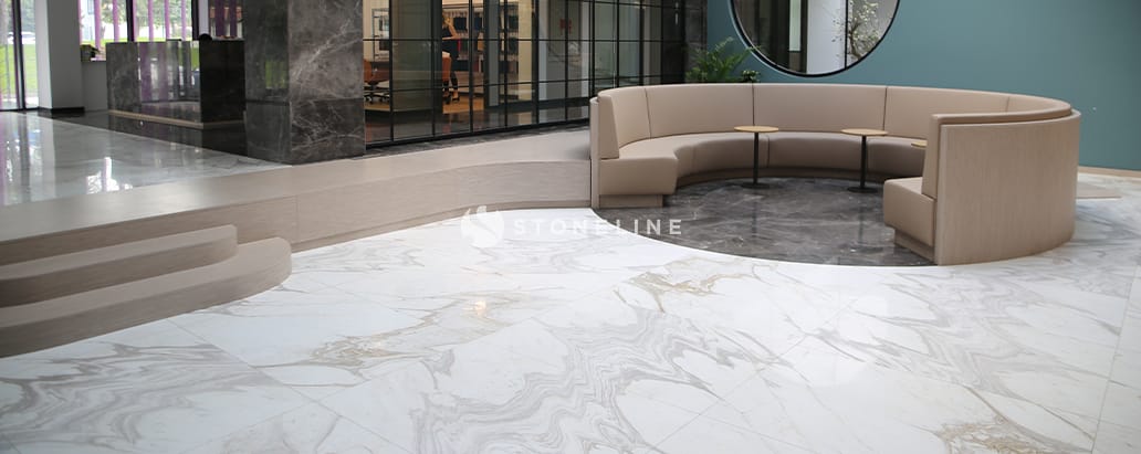 Bianco Lasa Venato Gold was preferred for its elegant, lean and soft lines in this office project of the Architect Yeşim Coşkun. You can also reflect the elegance of Bianco Lasa series from our marble selection to your elite projects.