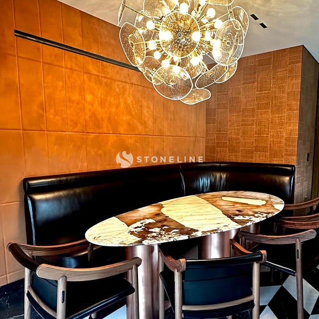 Designed with Stoneline’s prestigious natural stones, this exclusive residence project offers one of the most striking examples of luxury living and modern architecture. Created with the unique combination of Fusion Wow, Palagone, Persian Silver Travertine, Red Serpegiante and Calcadere Pink stones, this project creates an eye-catching living space by offering elegance and durability together.