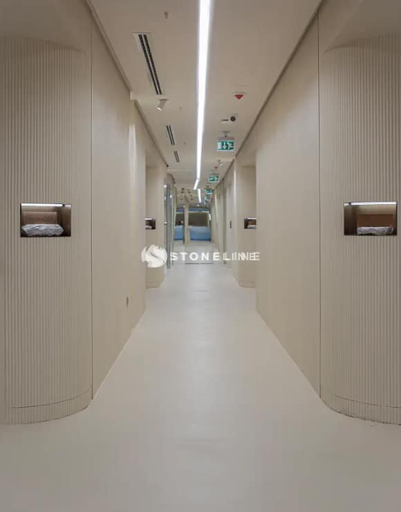 Stoneline’s natural stones, Light Travertine and Orion Limestone, are two special stones that add both aesthetics and functionality to modern architectural projects. The natural colour tones and durable structures of the stones used in this project add elegance and longevity to the spaces. The light and natural texture of Light Travertine, combined with the robust structure of Orion Limestone, creates a powerful effect both indoors and outdoors.