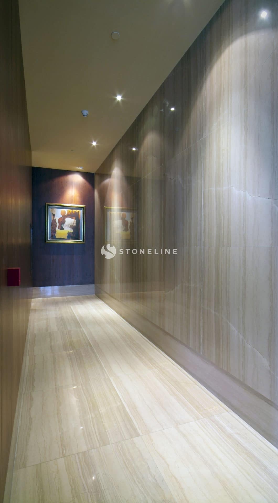 Designed by Toner Architecture, this restaurant project was decorated with Grey Serpegiante. Sepegiante group of marbles feature grey, beige and brown shades in general with their looks resembling thin, elegant and slightly curved parallel stripes.