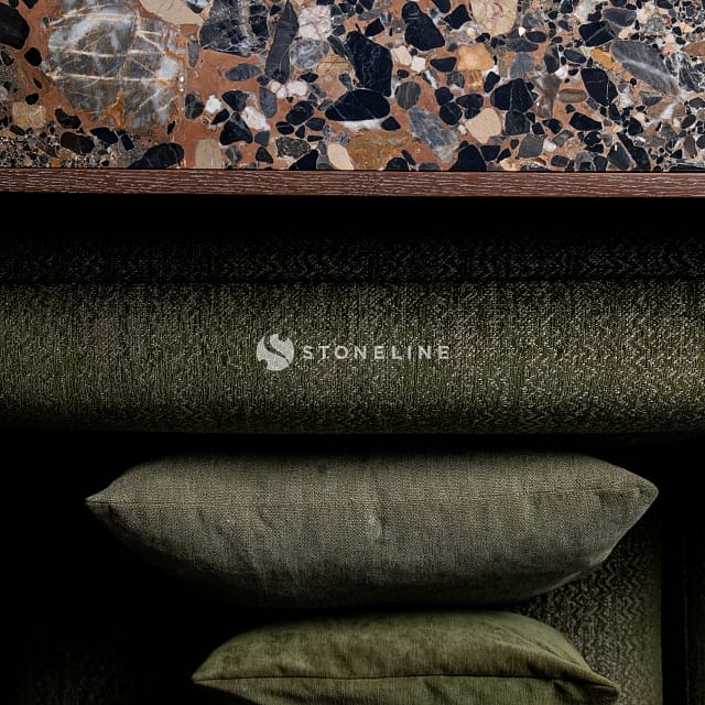 Stoneline natural stones, combined with the artistic touch of Urbanjobs, are the perfect choice to transform your space. Teakwood‘s warm colors bring together warmth and modernity, adding natural elegance to your interiors. Ceppo Gold’s sophisticated and stylish appearance is an excellent option, especially for those who want to emphasize architectural details. The unique tones of Ancient Green bring the elegant touch of nature to your spaces and create a unique and contemporary atmosphere.