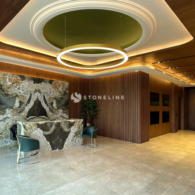 Stoneline natural stone collection, in collaboration with Zengi Mimarlık, presents exclusive designs that blend aesthetics and luxury with stones such as Corteccia, Calacatta Vogue, and Verde Tropicale. These select stones add a unique atmosphere to your spaces by reflecting elegance and uniqueness in every detail.