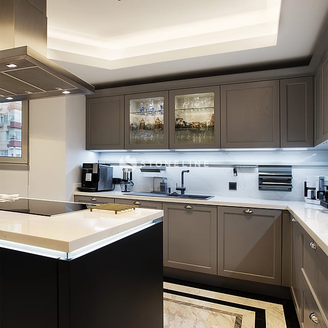 Stoneline collection offers a wide range of stones, from the pure white of Bianco Fantastico with high contrast to the elegant patterns and natural tones of Versalys. Each stone provides a different aesthetic emphasis for your projects. Collaborating with Zeynep Helvacıoğlu Mimarlık, the Stoneline natural stone collection presents exclusive stones that combine aesthetics and luxury.