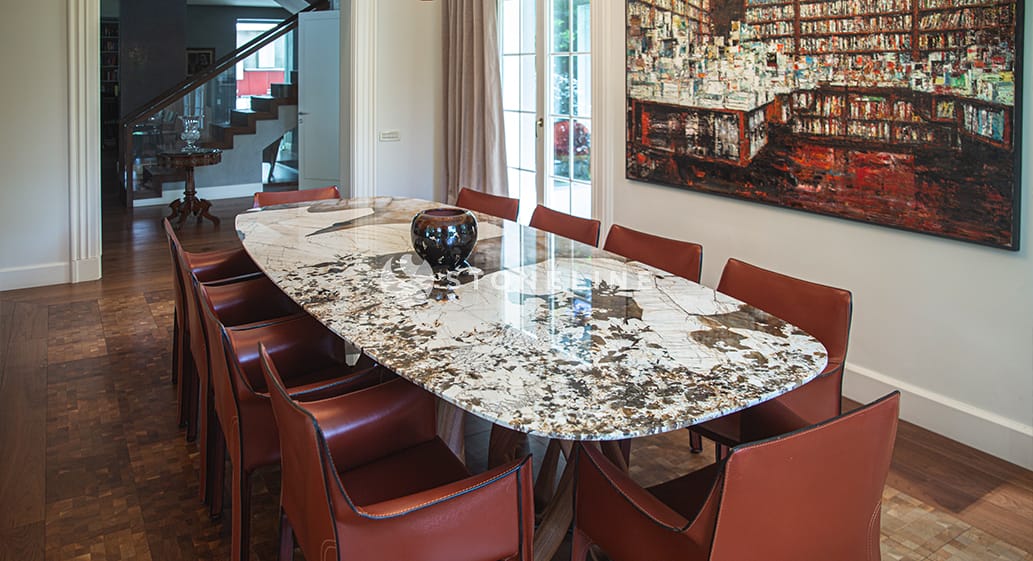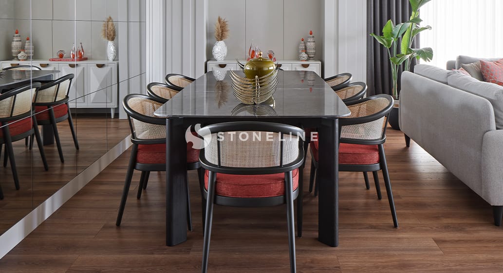 Stoneline adds unique elegance and durability to your spaces with its table project designed with Palagone stone, one of the most exquisite stones in nature. The Palagone stone, with its natural beauty and unique texture, stands out in any setting and creates a sophisticated atmosphere.