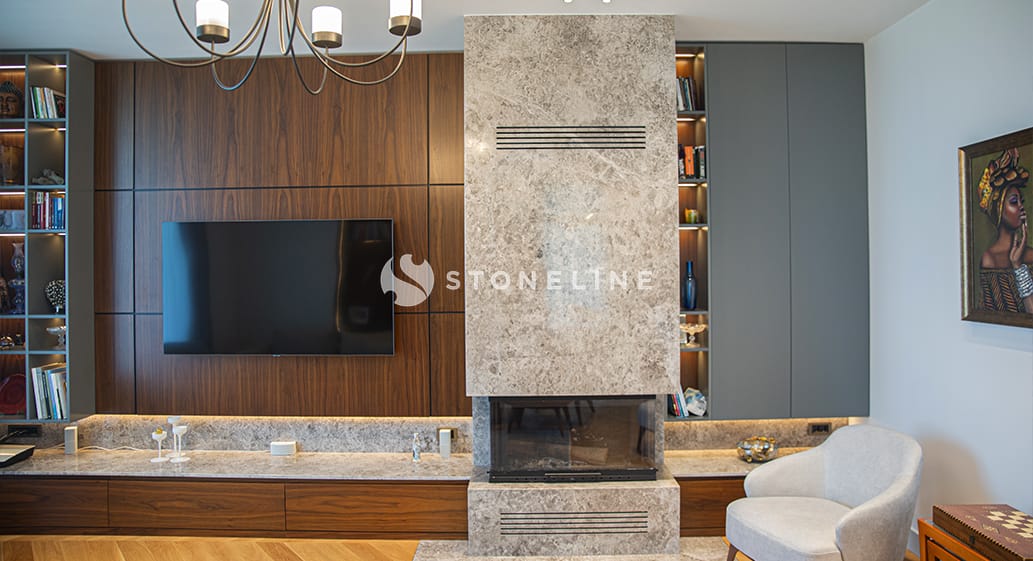 The Stoneline natural stone collection comes to life through a collaboration with the prominent interior design firm, Laçin Özyavru Interior Architecture, in custom design projects. One of the dazzling stars of the collection, Tundra Grey stone, offers the key to adding a sophisticated touch to your spaces.