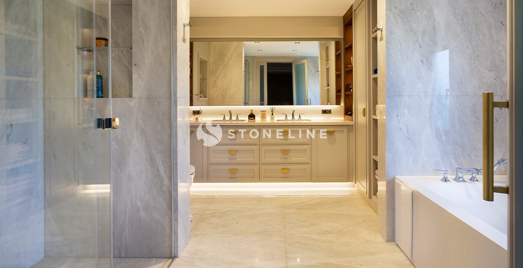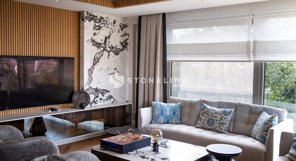 Statuario A1, Wow Quartzite, Carraro Gioa, Bardiglio Nuvolato Light stones from the Stoneline natural stone collection were preferred in this special residence project designed by architect Selen Hasoğlu. Hundreds of stones in the Stoneline natural stone collection are waiting for you to be your source of inspiration.