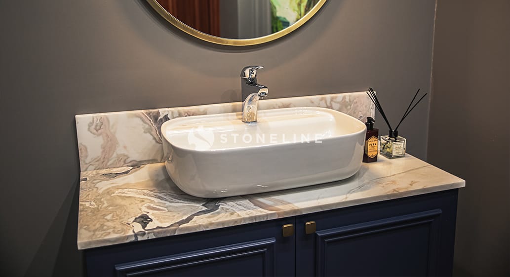 Beige Quartzite has the potential to be the focus of designs as a quartzite that can be applied on any surface such as kitchen countertop, dinner or coffee table in plain and stylish designs. You can also discover hundreds of stones from the natural stone selection of Stoneline for your elegant designs.