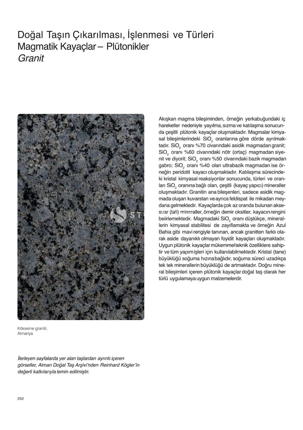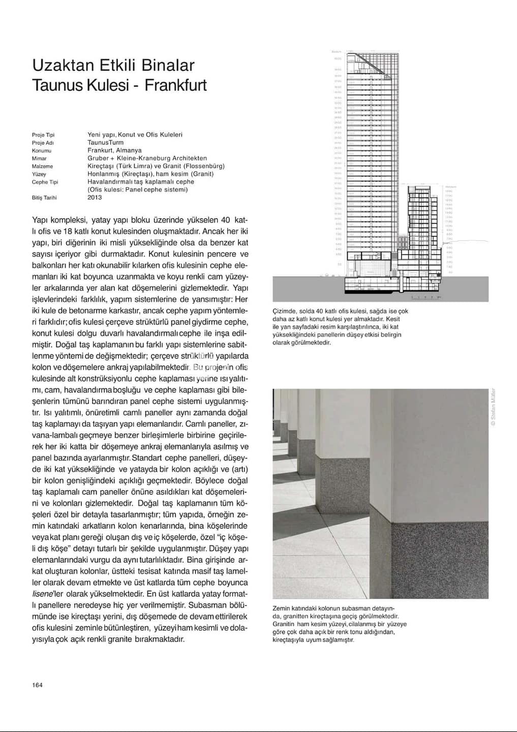 The book consists of five main sections that cover the current design trends and technologies in facade design with natural stone, references from architectural history, basic information, design methods, a comprehensive and unique examination of built structures and facades, the journey of natural stone from quarry to building, and an introductory classification of the main stone types.