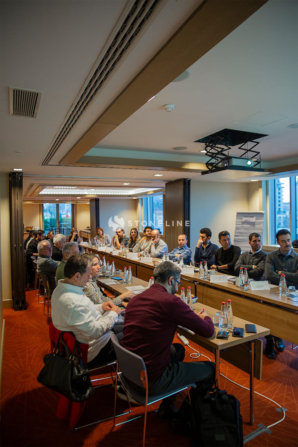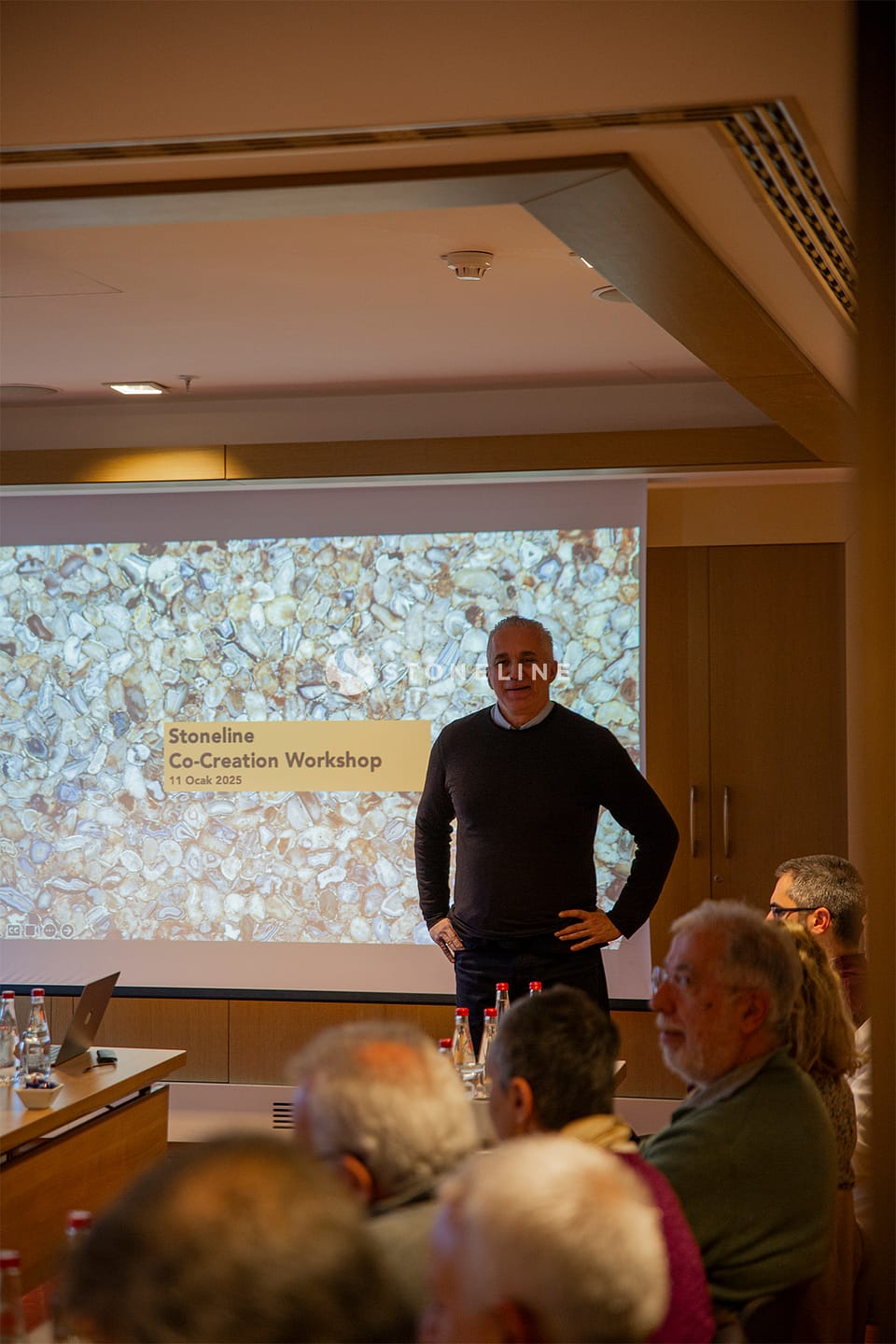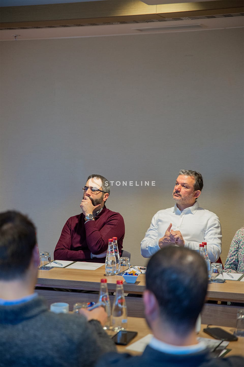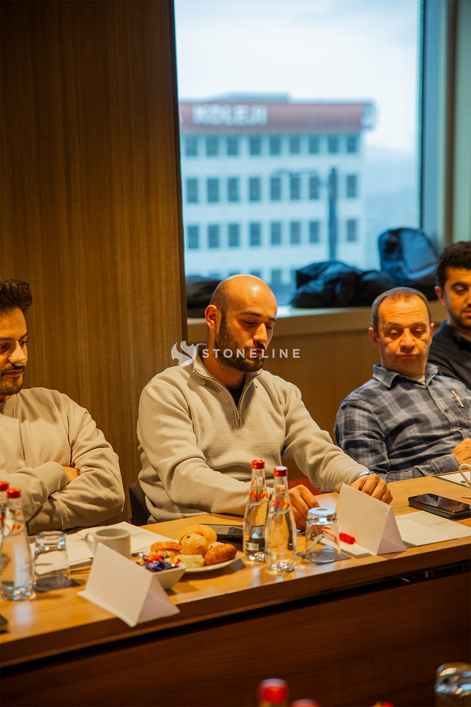 Following this presentation, which invited viewers to touch not just a surface but the very soul of the stone, our showroom tour commenced, featuring over 600 varieties of natural stone. Our guests experienced the stones they had discovered in the presentation in a physical space, closely observing their textures, colour transitions, and unique relationship with light.