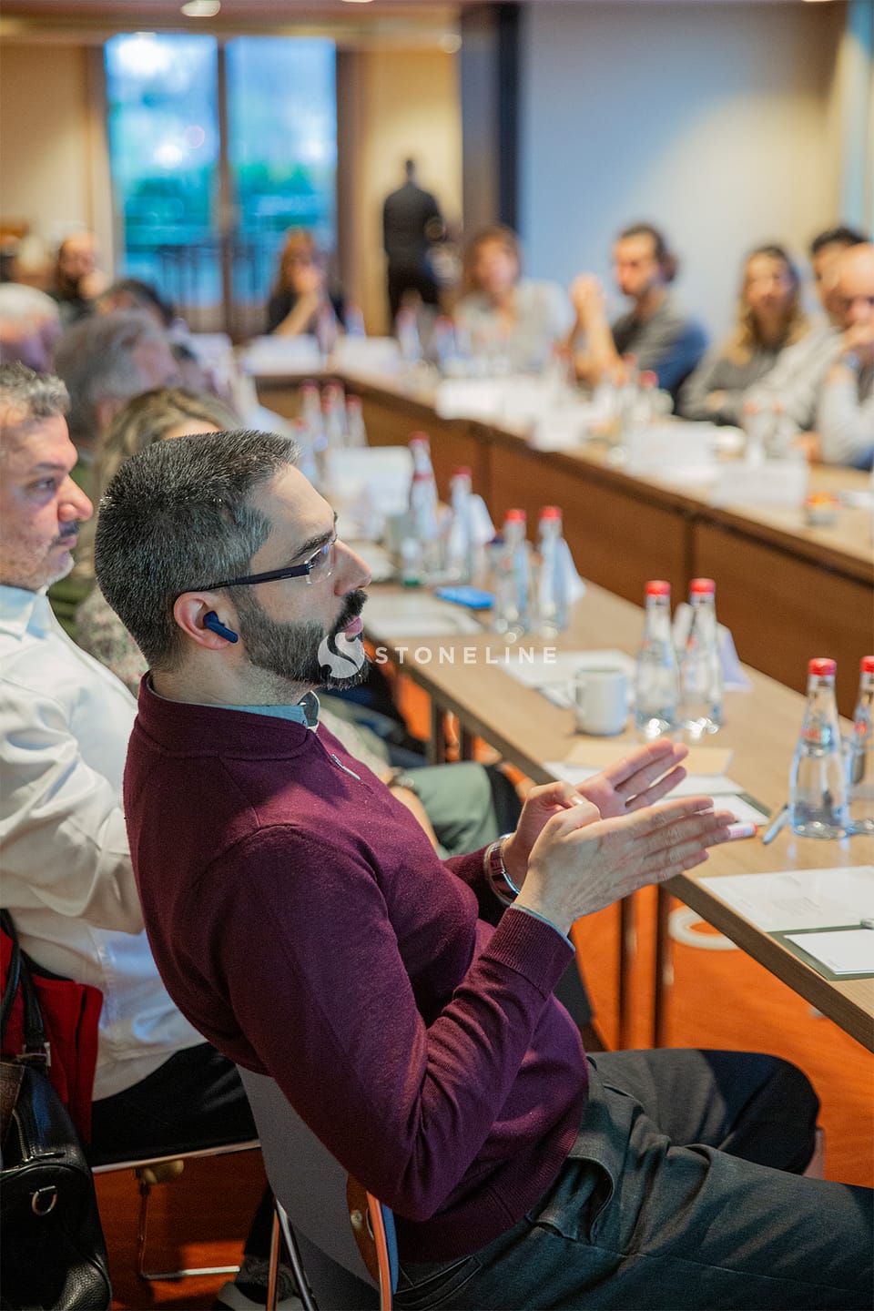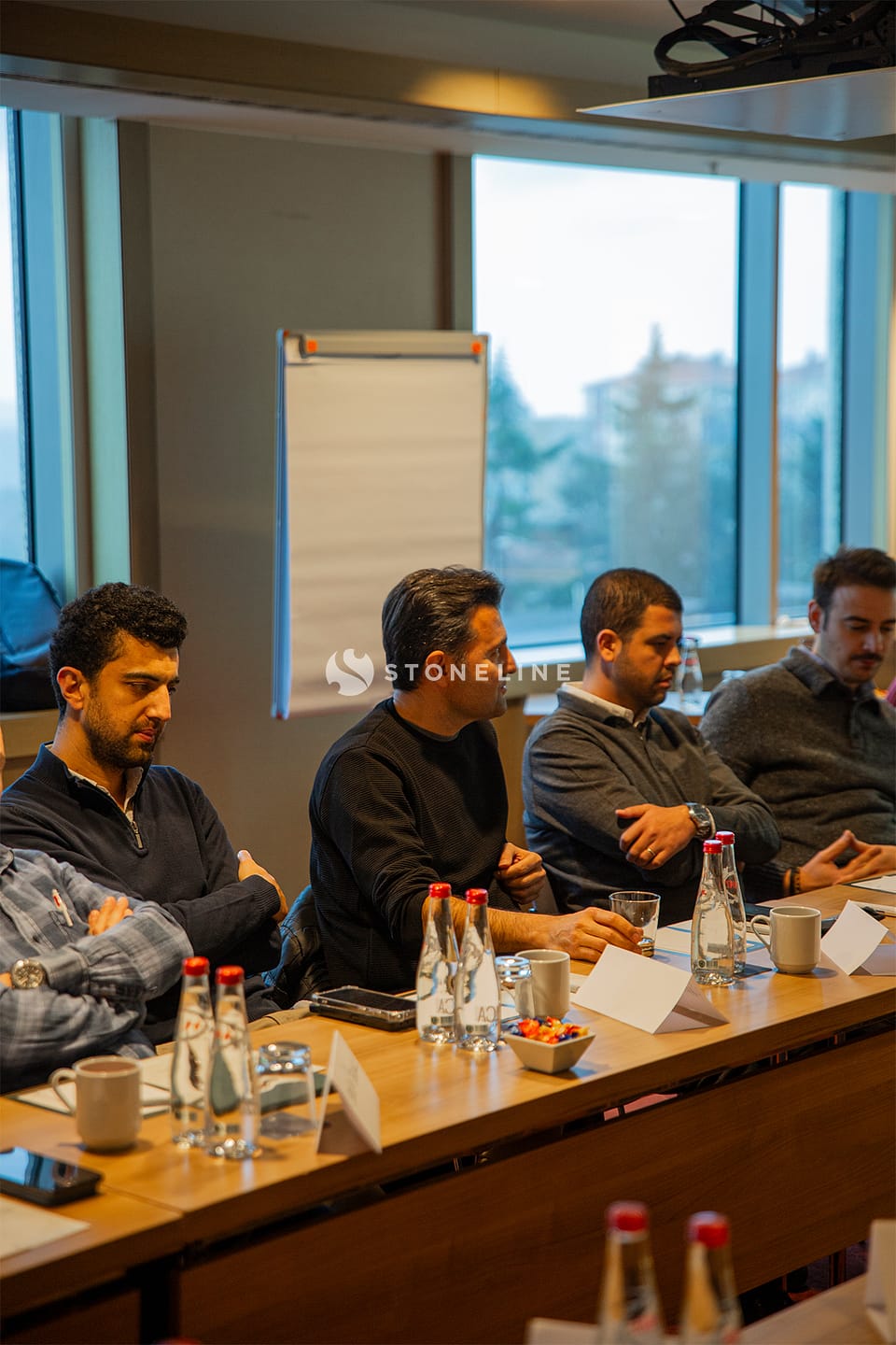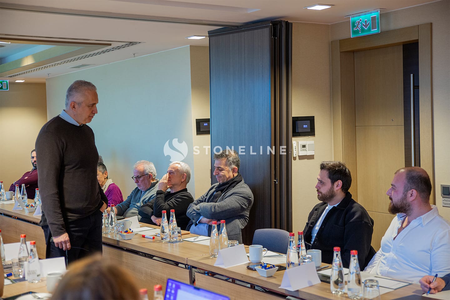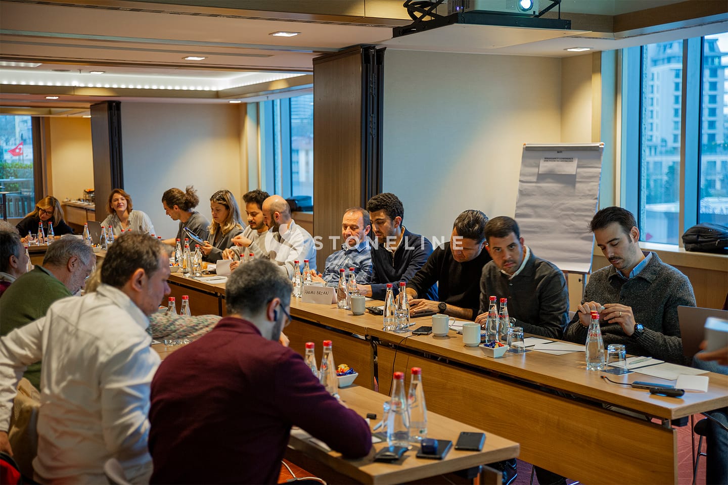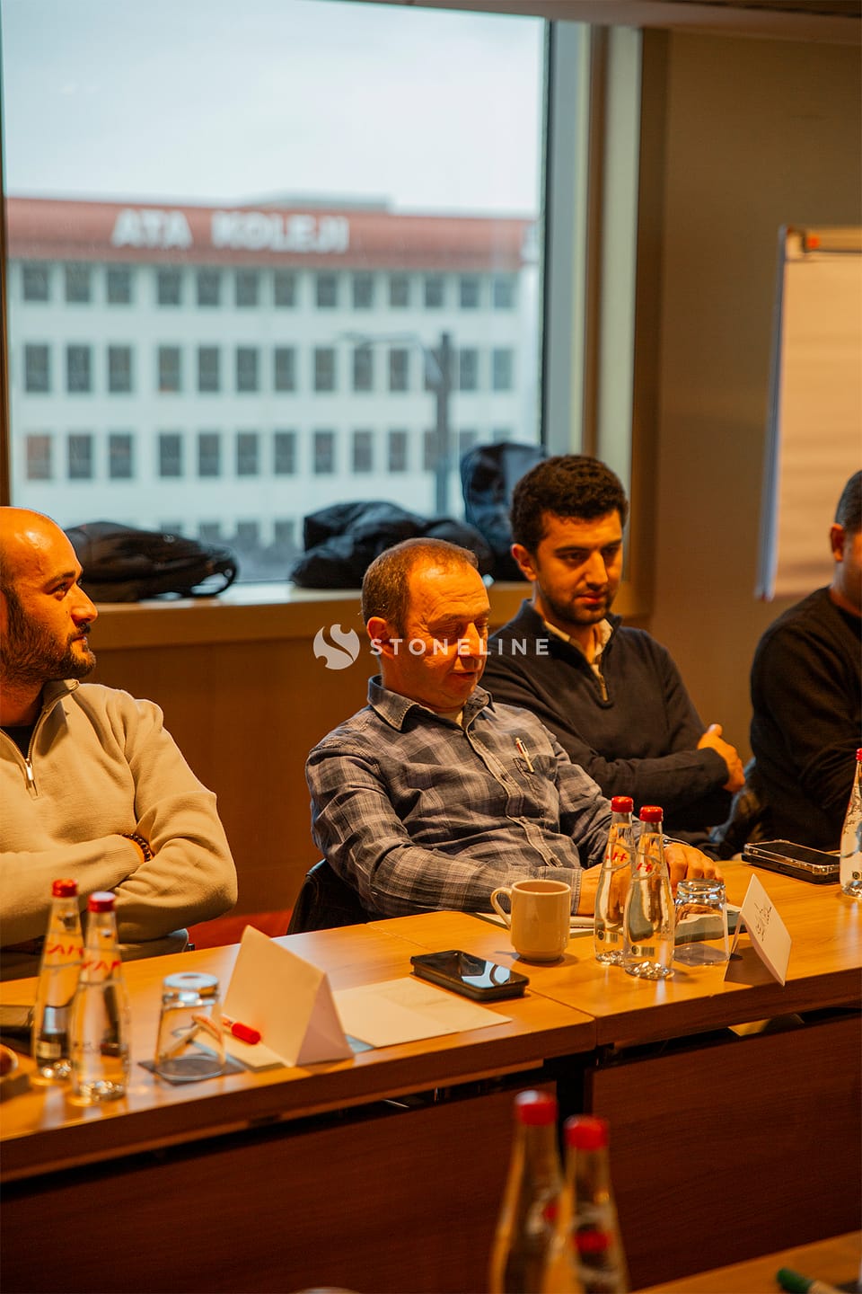 Following this presentation, which invited viewers to touch not just a surface but the very soul of the stone, our showroom tour commenced, featuring over 600 varieties of natural stone. Our guests experienced the stones they had discovered in the presentation in a physical space, closely observing their textures, colour transitions, and unique relationship with light.